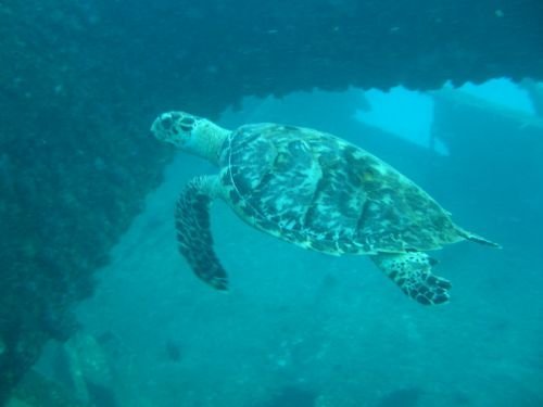 Schildkröte am Wrack der Antilla