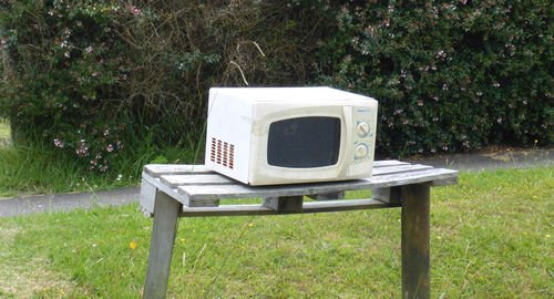alte Mikrowelle als Briefkasten