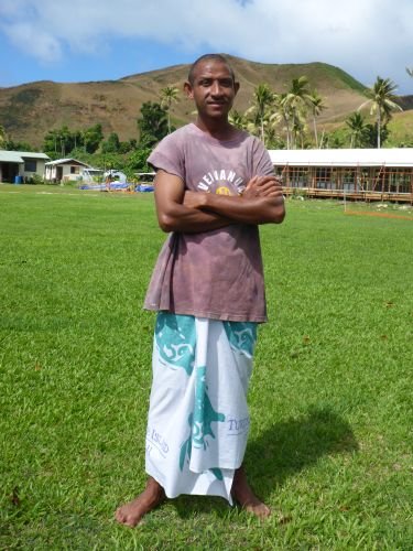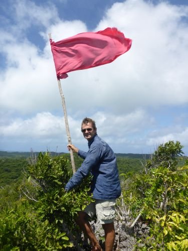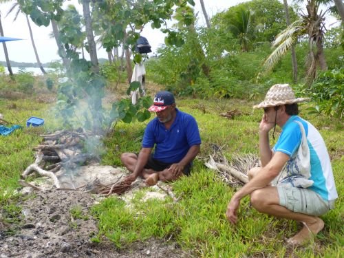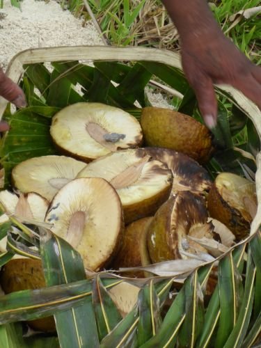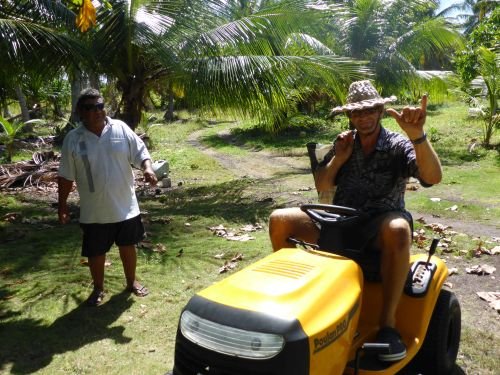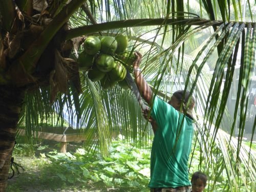 James pflückt Kokosnüsse für uns