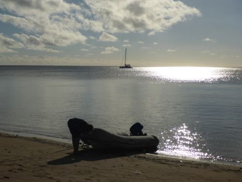 Benno parkt das Dinghi