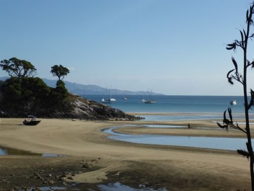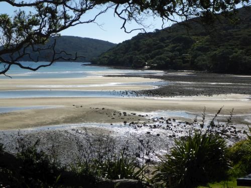 Tryphena Harbour bei Niedrigwasser