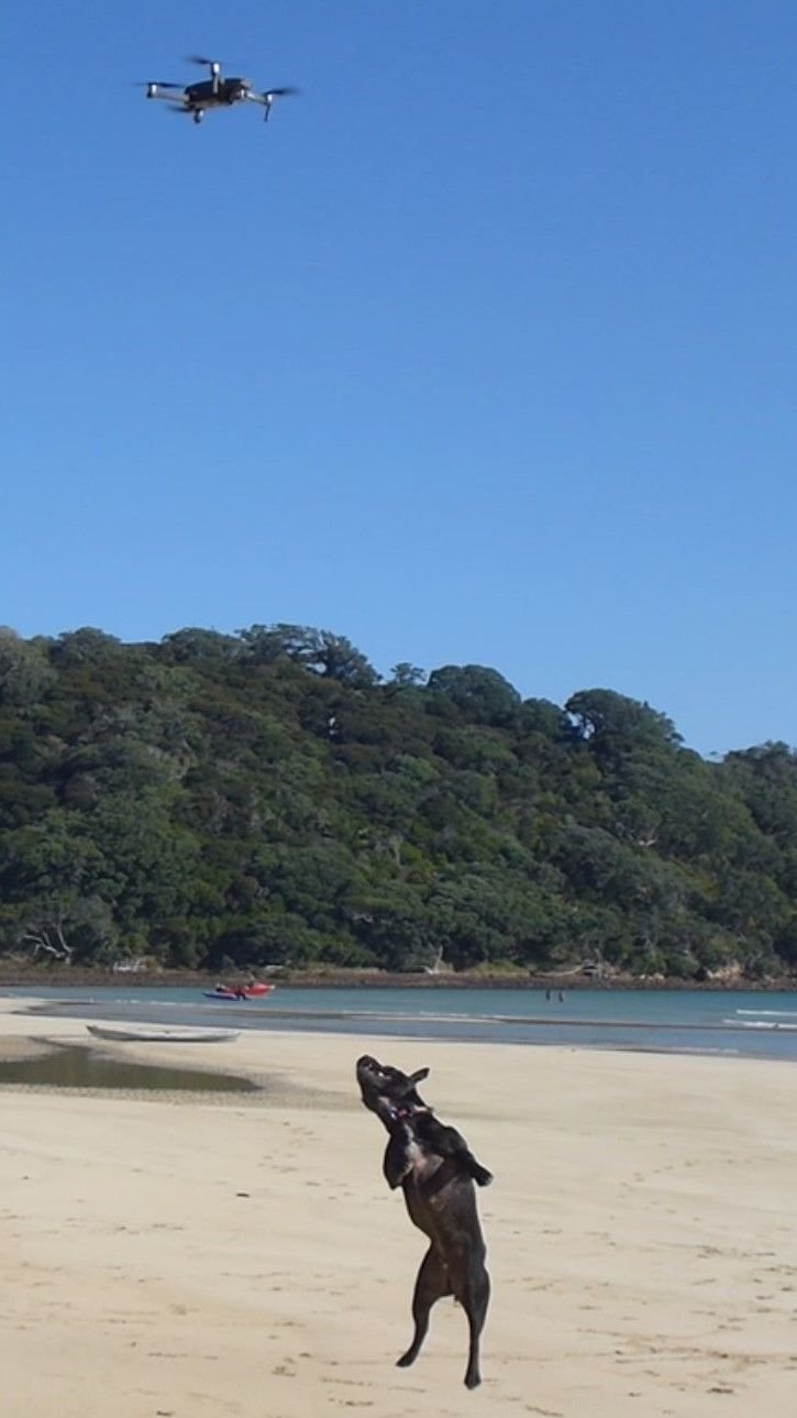 der Hund ist ganz narrisch wegen unserer Drohne