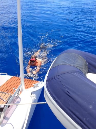Belena und Dinghi im Vordergrund
