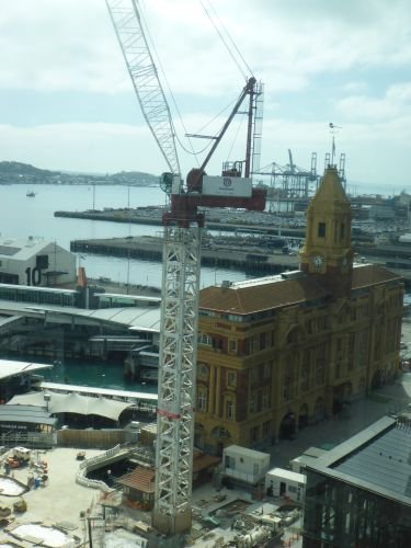 Ferrybuildung umgeben von Kränen
