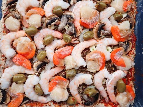 Jakobsmuscheln-Shrimps-Pizza