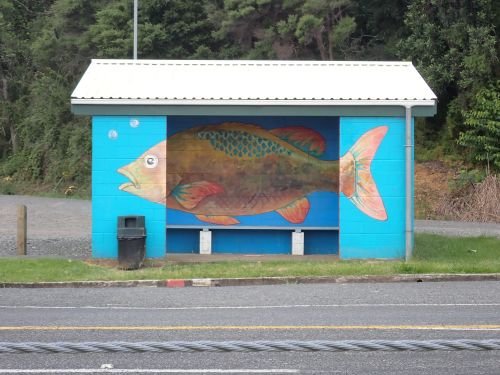 schön bemalte Bushaltestelle
