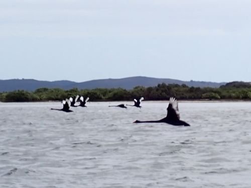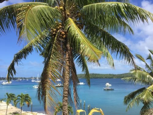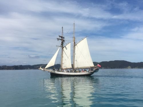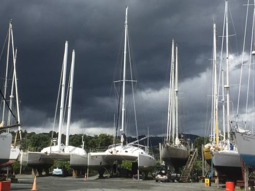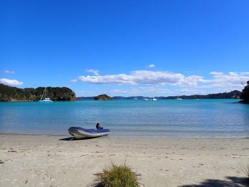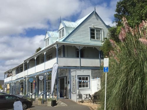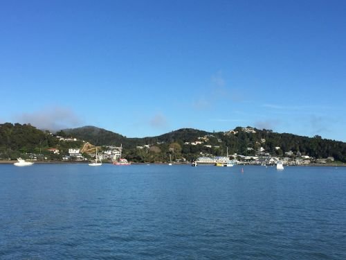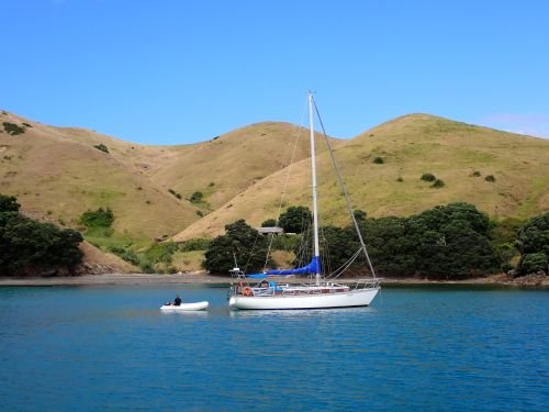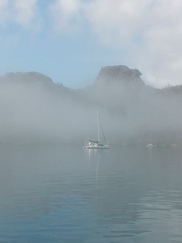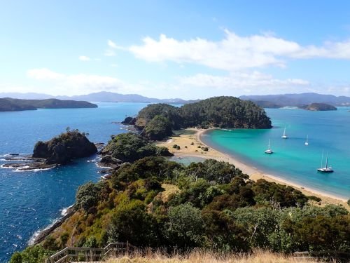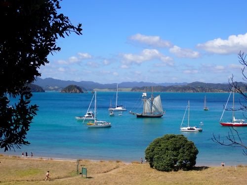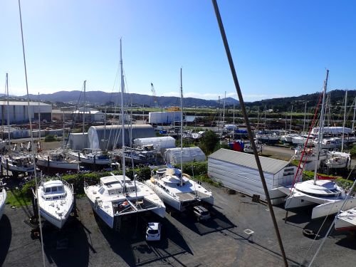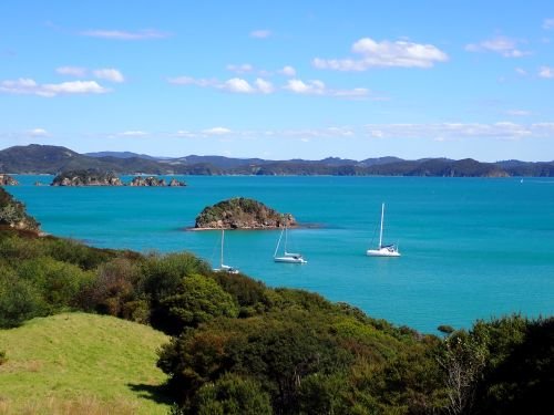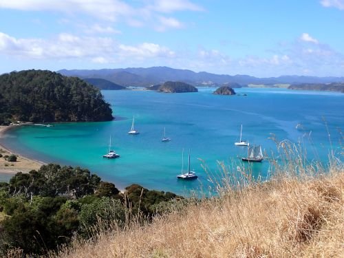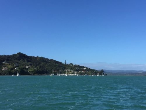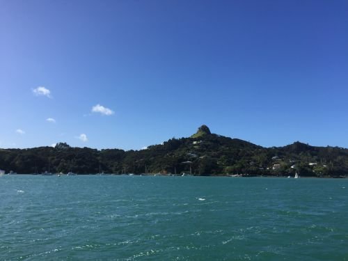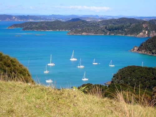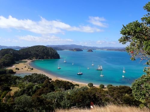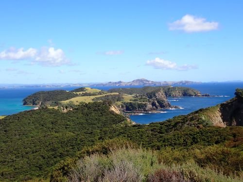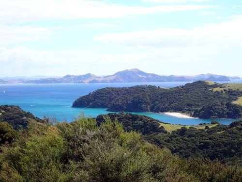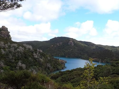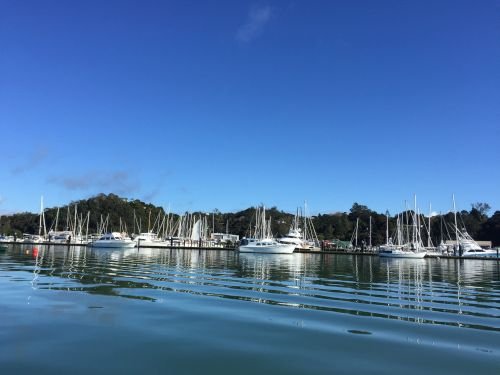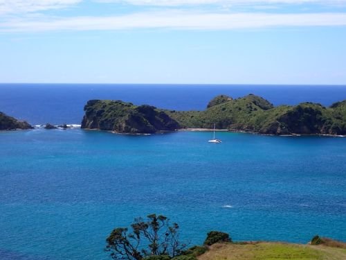 Blick von St Paul’s Rock auf den Whangaroa Yachtclub