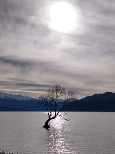der Lake Wanaka und der Tree – ganz klein am linken Bildrand