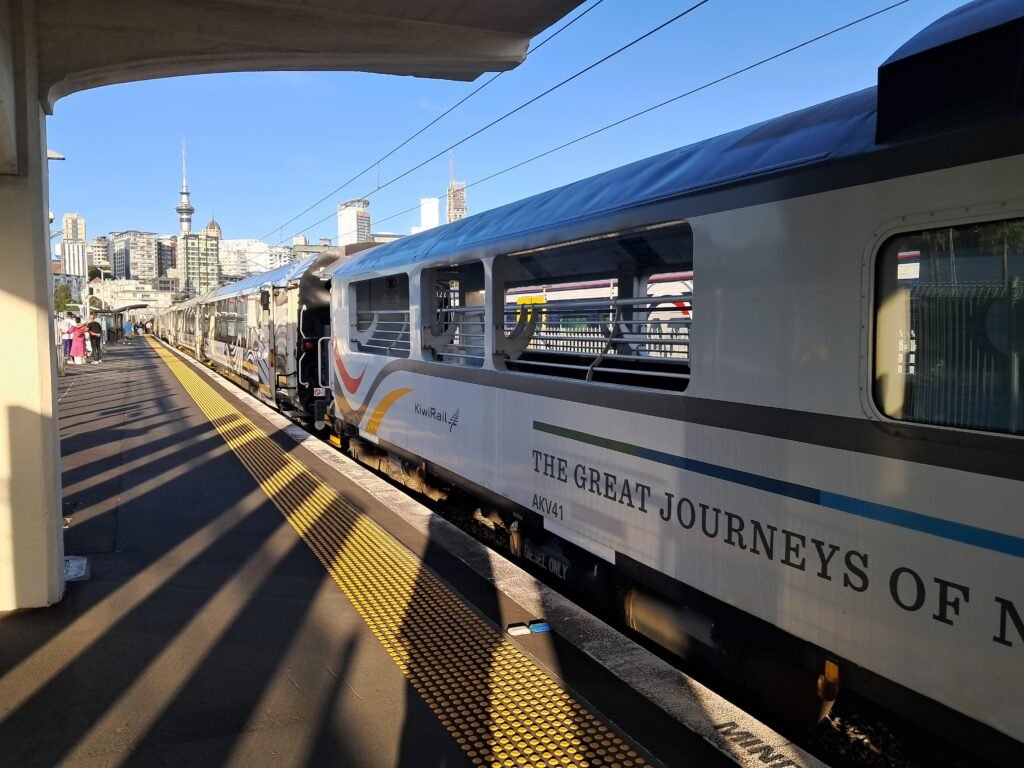 Es gibt in Neuseeland landschaftlich sehr schöne Zugstrecken. Eine davon, die mit dem TranzAlpine auf der Südinsel, die von Christchurch nach Greymouth führt, haben wir 2020 bereits gemacht. Nun wollen wir mit dem Northern Explorer von Auckland nach Wellington fahren. Ich habe schon seit längerer Zeit den Plan, einmal mit diesem Zug zu fahren, aber bisher hatte sich dazu keine Gelegenheit ergeben.