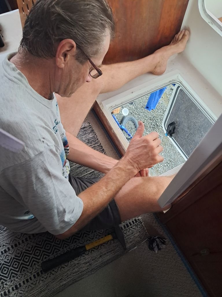 Eine sehr aufwendige Arbeit war der Einbau unserer neuen Luke im Eingangsbereich. Wer jetzt denkt, das ist an einem Tag erledigt, weit gefehlt! Ich will jetzt nicht ins Detail gehen, aber es hat wesentlich länger gedauert.