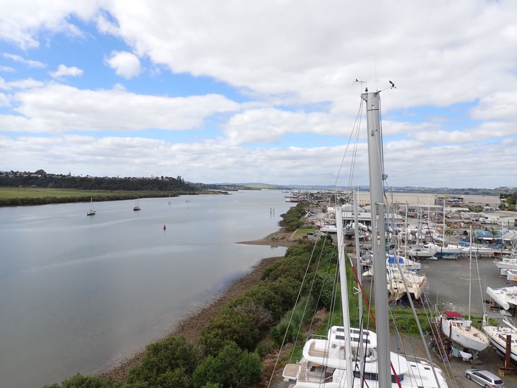 Aber am Anfang hatten wir noch eine schöne Zeit in der Urquharts Bay und vor Limestone Island, ehe Belena am 5. Februar an Land gestellt wurde. Wie immer wurde das mit dem Norsand Team professionell über die Bühne gebracht. Wir bekommen wieder einen Platz, wo wir vom Cockpit auf den Hatea River gucken können, und haben so kurze Momente eines Urlaubsfeelings. Na ja, jedenfalls bilden wir uns das so ein.