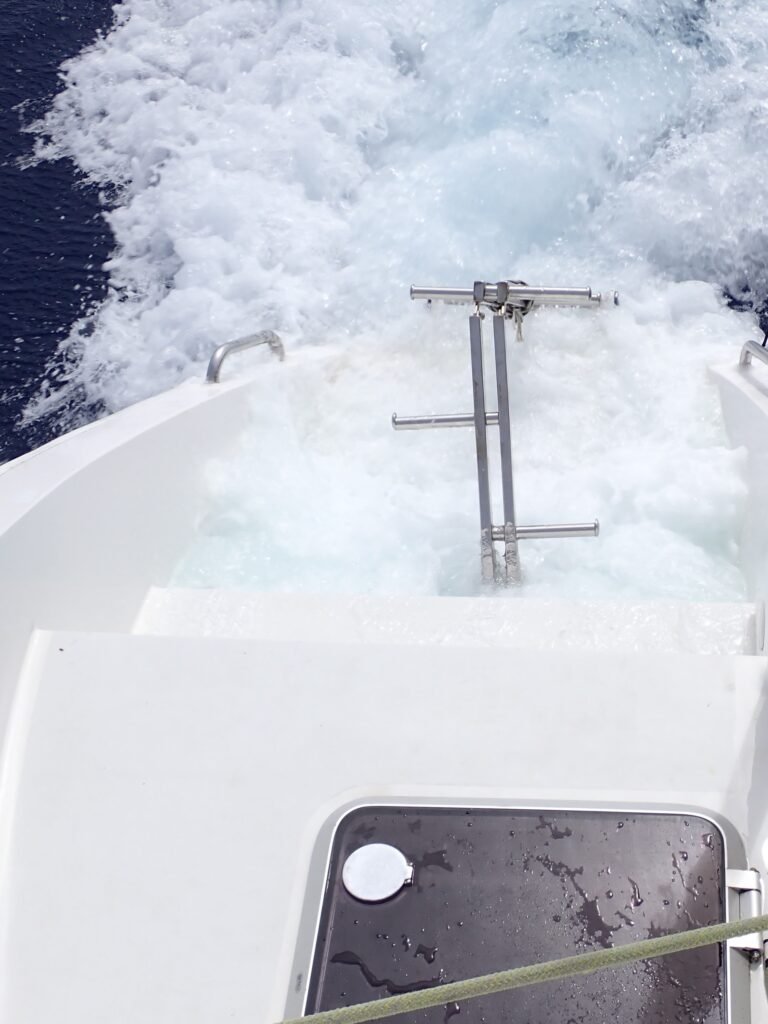 Susanne war übrigens sehr beruhigt, als ich ihr erzählt habe, dass wir nun auch einen JSD haben, und meinte, das sei unsere Lebensversicherung. Sie muss es ja wissen, denn sie hatte auf ihrer neunmonatigen Segeltour eineinhalbmal um die Welt diesen JSD siebenmal ausbringen müssen. Susanne ist übrigens einen Tag vor uns losgefahren, und zwar in die gleiche Richtung. Wir haben uns nochmal auf dem Wasser getroffen und gegenseitig fotografiert.