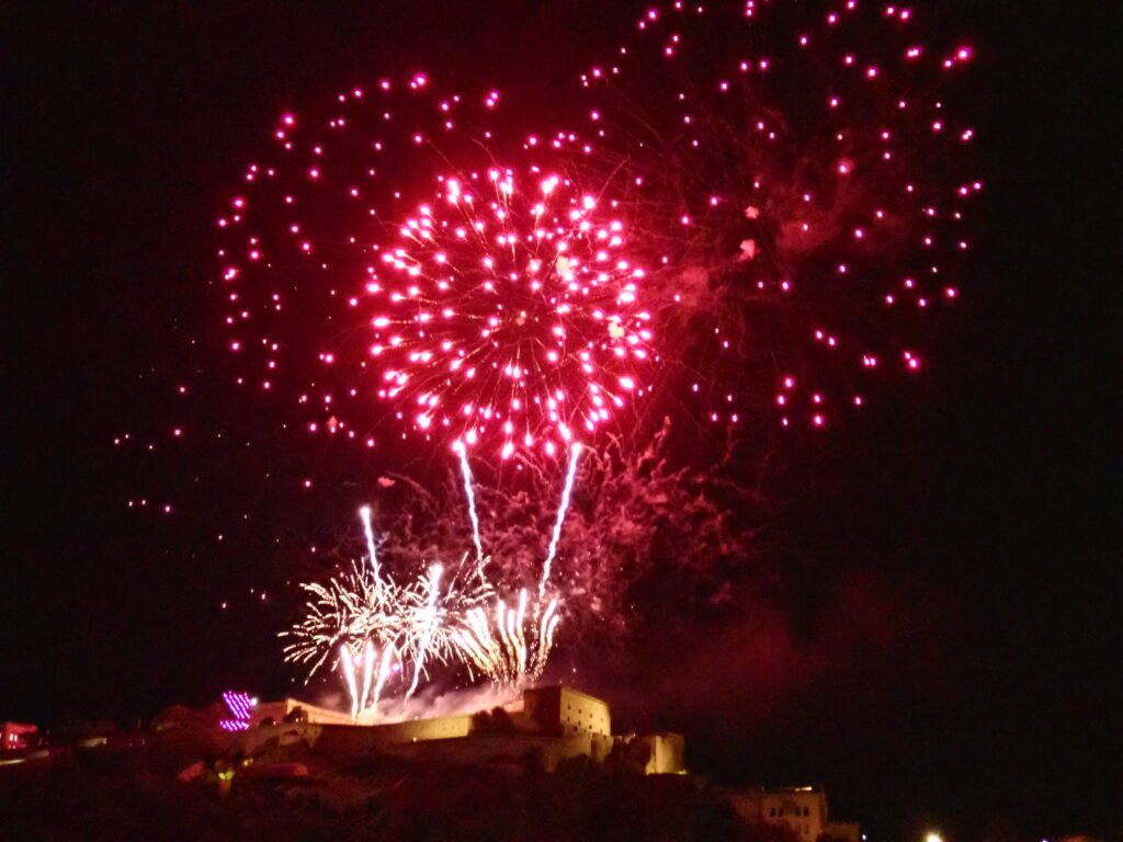 Ein weiteres touristisches Highlight war der „Rhein in Flammen“. Obwohl ich von der Mosel komme, hatte ich es noch nie geschafft, mir dieses Event anzuschauen. Wir haben in Koblenz noch meinen Cousin und seine Frau getroffen und haben eine Fahrt auf einem Moseldampfer gebucht. Wir haben eine Tour tagsüber bis Boppard gemacht und haben die vielen Schlösser und Burgen entlang des Rheinufers bestaunt, und abends haben wir die gleiche Tour nochmal gemacht. Nach dem Abendessen war es dann endlich dunkel genug und viele Moselschiffe hatten sich versammelt und sind gemeinsam ab Boppard den Rhein wieder runtergefahren. Viele Gemeinden haben nacheinander ein Feuerwerk gezündet, angefangen bei Spay bis hin zu Koblenz, wo das Feuerwerk über der Festung Ehrenbreitstein den Höhepunkt bildete.