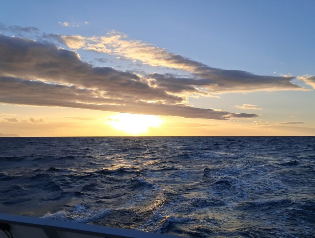Auch am zweiten Tag war nicht so viel Wind, doch am dritten Tag lief es dann richtig gut. Allerdings hatten wir auch 3-4 Meter hohe Wellen und liefen nur mit Kutterfock oft an die zehn Knoten schnell. An diesem Tag haben wir frühmorgens die Datumsgrenze überquert und sind damit im Kalender vom 22.12. wieder auf den 21.12. zurückgegangen. Das bedeutet, dass wir den 4. Advent zweimal erlebt haben. Wir waren in Neuseeland während der neuseeländischen Sommerzeit und der deutschen Winterzeit genau 12 Stunden voraus. Nach der Überquerung der Datumsgrenze waren wir dann 12 Stunden zurück. Wenn wir auf den Gambier-Inseln angekommen sind, sind wir ja noch östlicher als jetzt und sind dann nur noch 10 Stunden zurück zu Deutschland.
