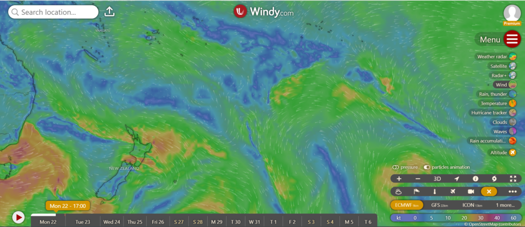Kurz vor ihrer Ankunft in Neuseeland musste sie noch einen heftigen Sturm abwettern. Zyklon Tam hat Neuseeland besucht und hat für hohe Wellen und viel Wind gesorgt. Es wurden an Mess-Bojen Wellenhöhen von 15 m gemessen. Beeindruckend.