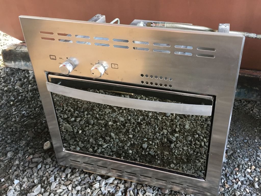 Dann hat Benno unseren Gas-Backofen ausgebaut, da ich ihn seit Jahren nicht mehr benutzt habe. Wir haben so viel Energie, dass ich schon seit fast 10 Jahren einen kleinen elektrischen Backofen betreibe. Nicht so ein Riesending, aber groß genug für unsere Zwecke. Der alte Backofen wiegt übrigens 22 Kilo und Benno freut sich immer, wenn das Schiff leichter wird. Nun habe ich neuen, zusätzlichen Stauraum :-))