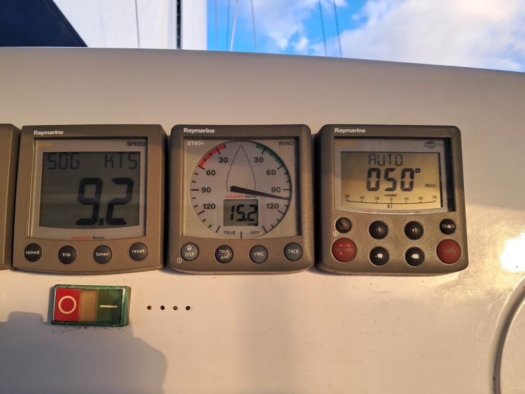 Die tägliche Bordroutine hat sich nun auch etabliert, und wir gehen die Wachen so, wie wir es immer machen. Nach dem gemeinsamen Frühstück geht Benno nach einer Fundrunde auf dem SSB-Radio in die Koje und ich schiebe die Vormittagswache. Ich bereite das Mittagessen zu und nach dem Essen ziehe ich mich zurück, während Benno Wache hat. Am späten Nachmittag verbringen wir Zeit zusammen, spielen manchmal eine Runde Rummikub und dann gibt es Abendessen. Danach ist Bennos Freiwache und ich halte die Stellung bis spät in die Nacht. Meistens bleibe ich bis ein Uhr wach und dann übernimmt Benno wieder die Wache bis zu den Morgenstunden. Dann gemeinsames Frühstück und die ganze Chose wiederholt sich. Wir kommen mit diesem Wachsystem gut klar und haben kein Problem, so wochenlang auf See zu sein.